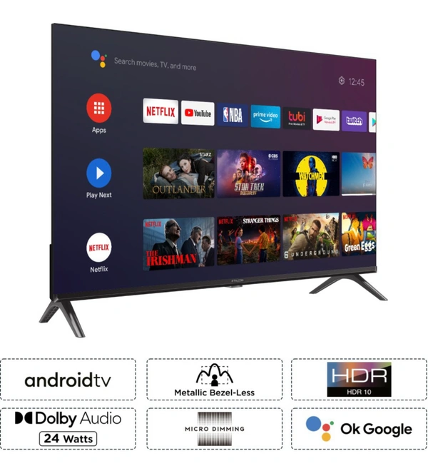 - TV Features: Android OS, 1 GB RAM, 8 GB internal memory, G31MP2 @550MHz Graphics processor