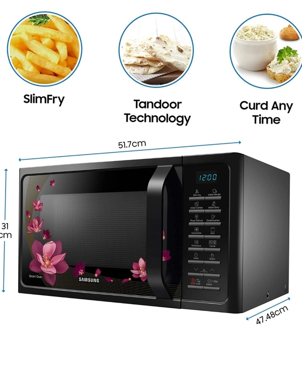 Samsung 28 L Convection Microwave Oven (MC28A5025VP/TL, Black with Magnolia Pattern, Slim Fry)