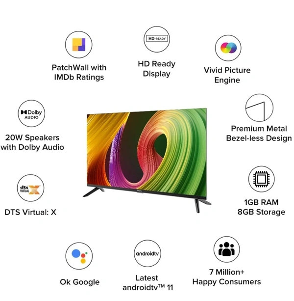 TV Features: Android OS, 1 GB RAM, 8 GB internal memory, Mali G31 MP2 Graphics processor