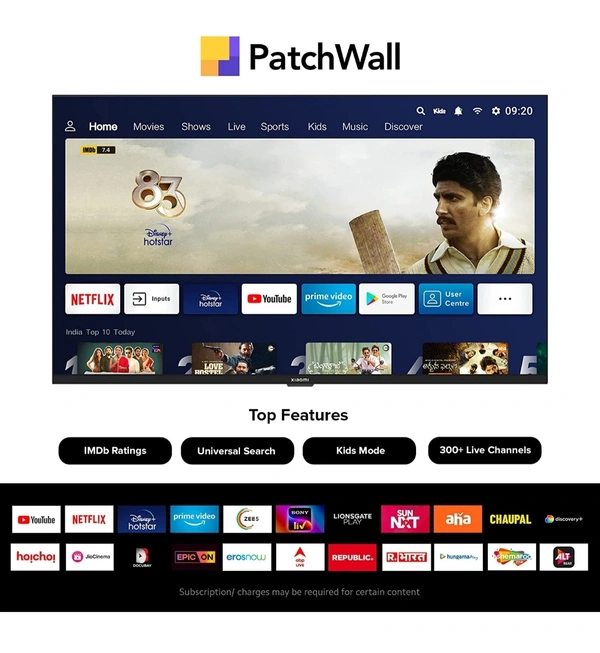 Supported Apps: Netflix, Youtube, Prime Video, Disney+Hotstar, and, 5000+apps, from, Play Store